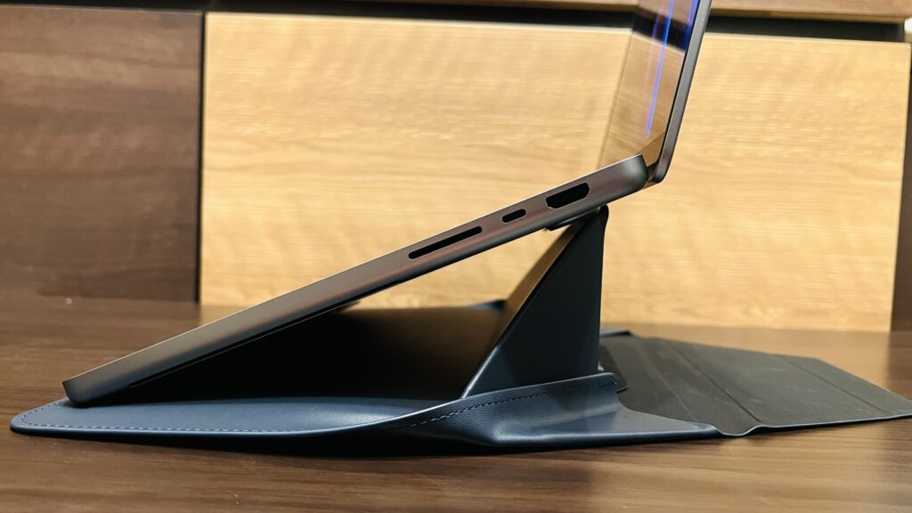 ただ、キーボードとトラックパッドの角度もキツくなるため、タイピングがしずらいと思うかもしれません!