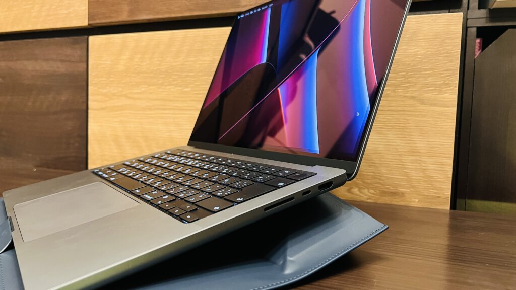 2022年1月に購入したばかりのMBP14インチですが、公式では13,3インチ用と記載されているので、PCがケースに合うかとても不安でした