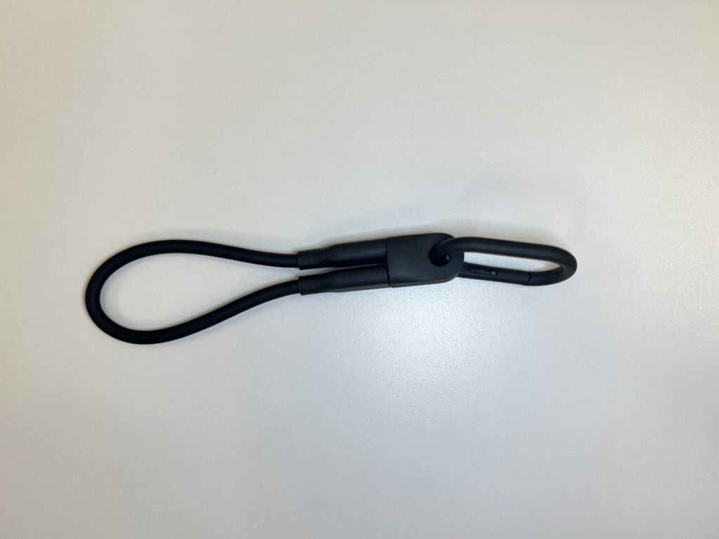 持ち運び用のケーブルとして設計されており、ポーチやバッグにそのまま取り付けられるのが魅力です。