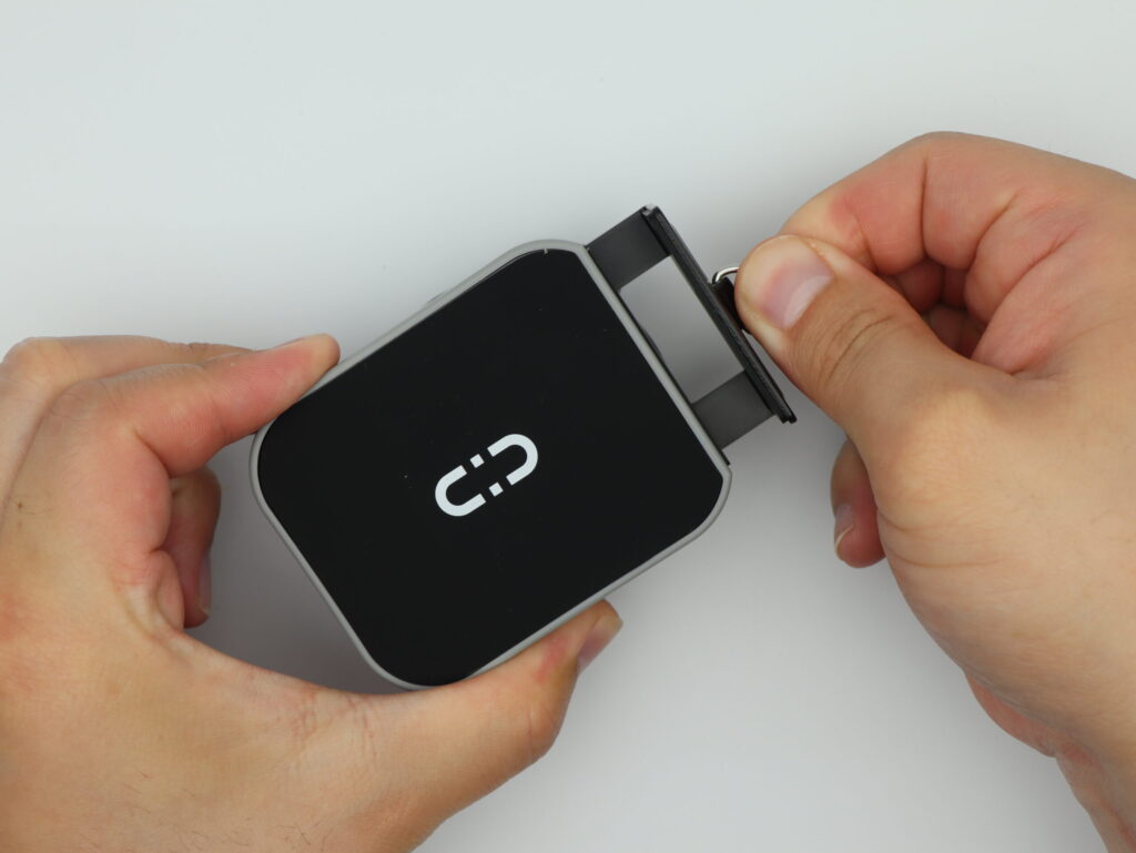 付属のカラビナを使えばデスクを広げなくとも、iPad mini 6が固定できちゃいます!