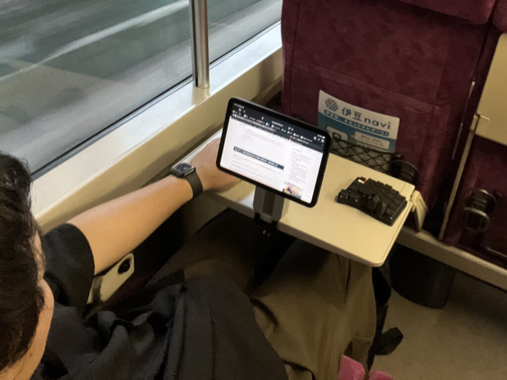 実際にグリーン車のテーブルで使ってみました!お共はiPad mini 6!