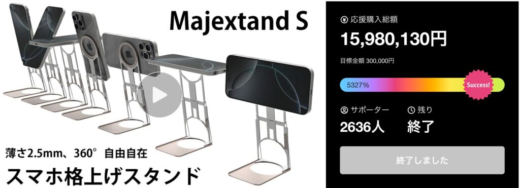 Makuakeで1600万弱の支援金を達成し、2636人のサポーターを集めました!