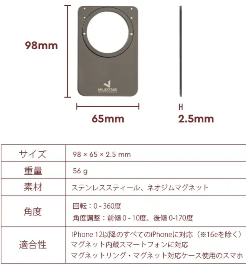 Majextand Sはスマホ用として販売されているため、タブレットでの使用は非推奨かもしれませんが、iPad mini 6でもMagSafeリングを後付けすれば使えます!