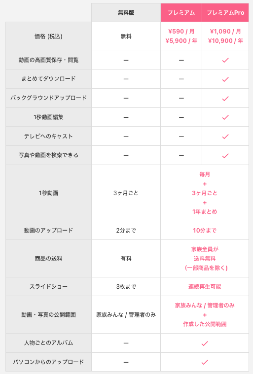 運動会の動画とか共有しずらいところはあるので、プレミアムプランはいいかもしれません!