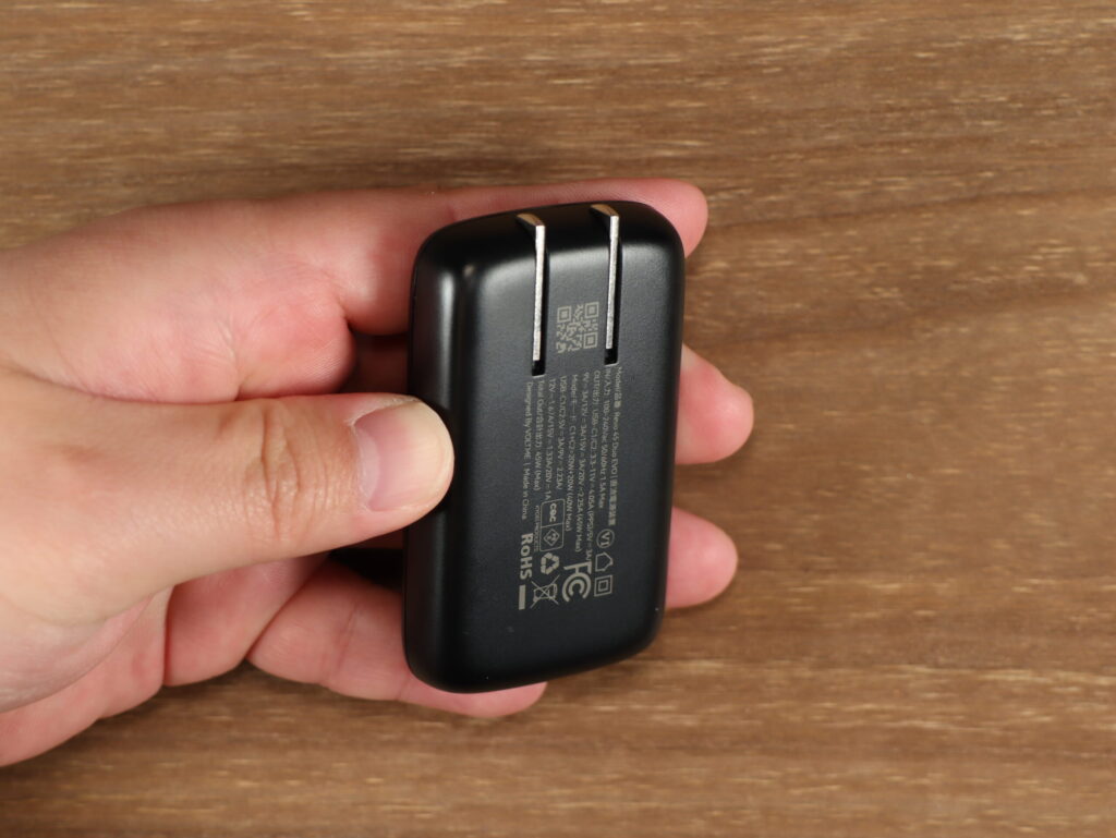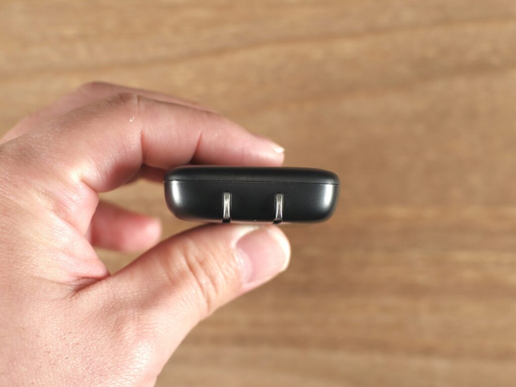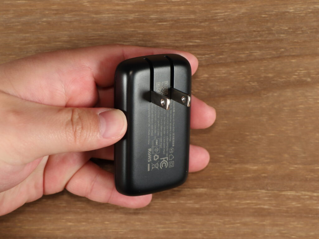 折りたたみ式プラグを採用しており、バッグやポーチにもすっきり収まるのが魅力です。