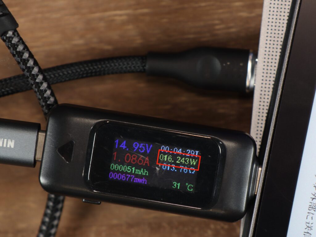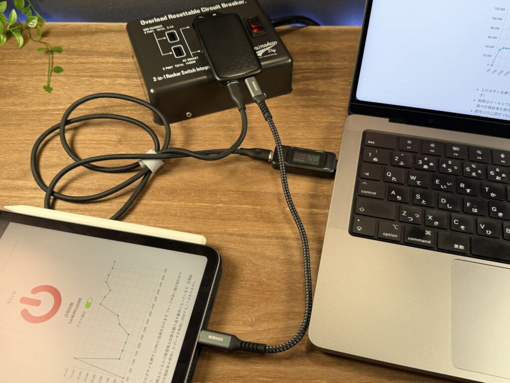 「MacBookは17.09W」と「iPad mini 6は16.24W」程度出ており、公称値の20Wまでは行かないもの通常の充電なら十分!
