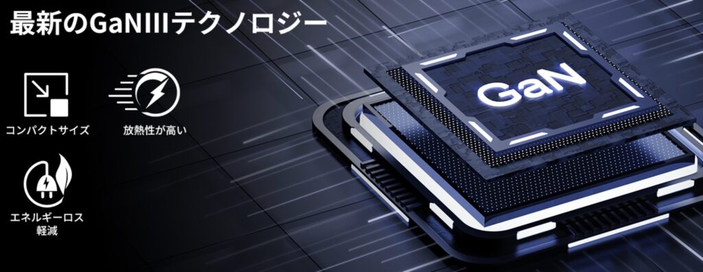 新世代の半導体素材「GaN」を採用することで、発熱を抑えつつ高出力を実現。