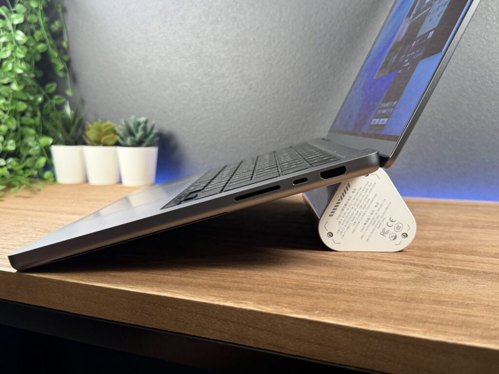 ポートはUSB-Cが2ポート、USB-Aが1ポート側面に付いています。ポートの下部には電源ボタンが付いています。