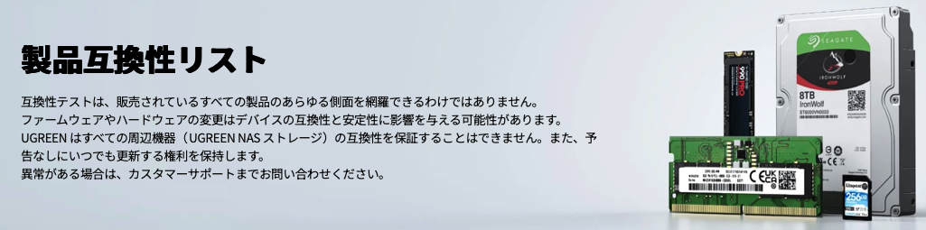 HDD購入にはUGREENの互換性リストを確認していただくと、使用可能なHDDを教えてくれます!