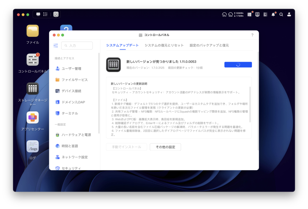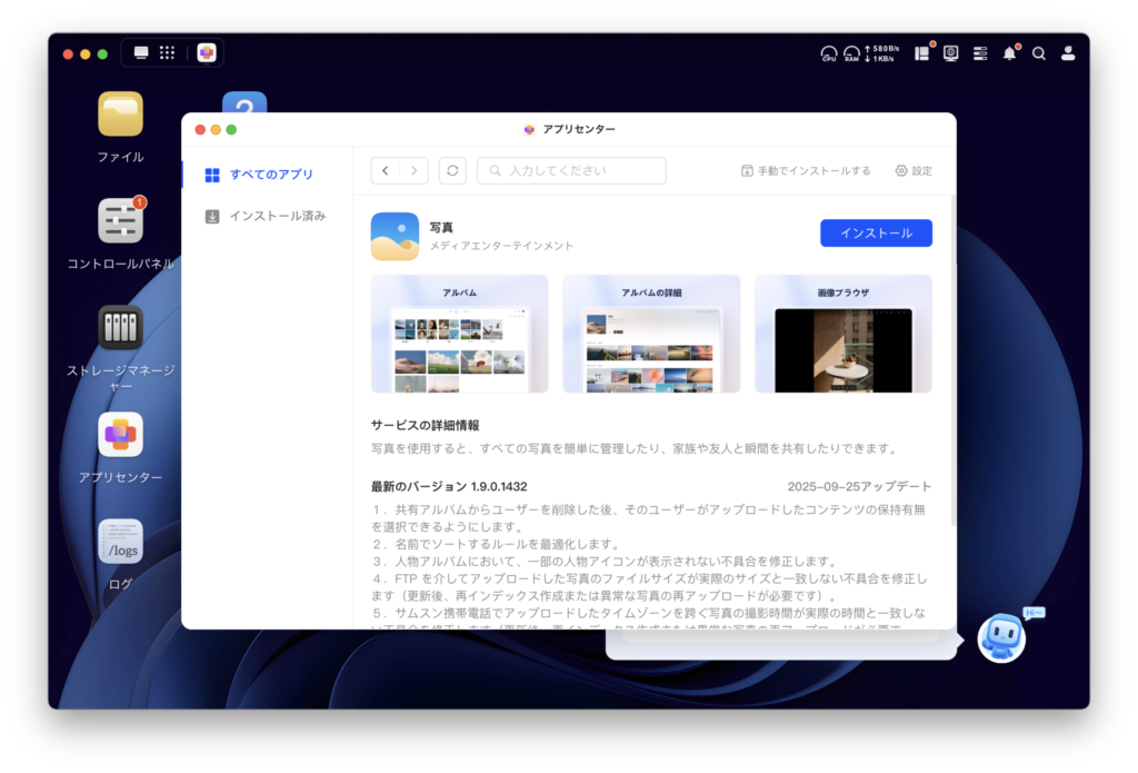 また、データがクラウド上ではなく自宅のNASに保存されるため、外部サービスのトラブルやアカウント停止などの影響を受けにくいのもポイント。