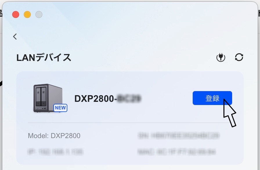 デバイスの登録はNASがしっかりとルーターに接続されていれば画面に出てくるので、登録をクリック。