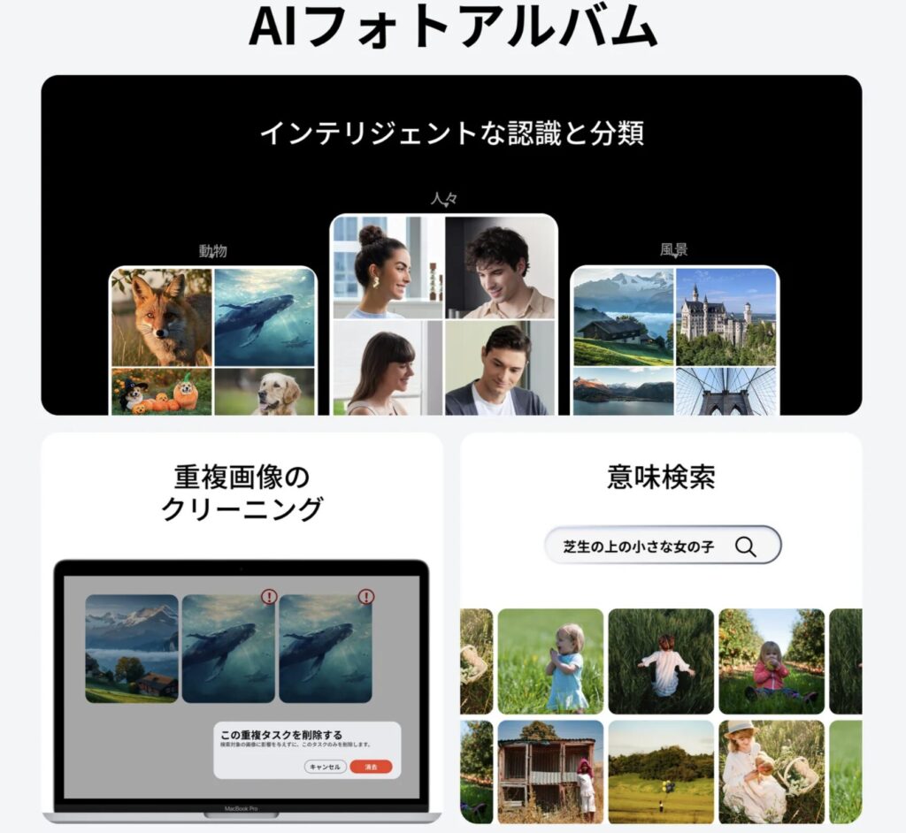 UGREEN NASyncに搭載されているAIフォトアルバムは、保存した写真や動画を自動で整理してくれる機能です。