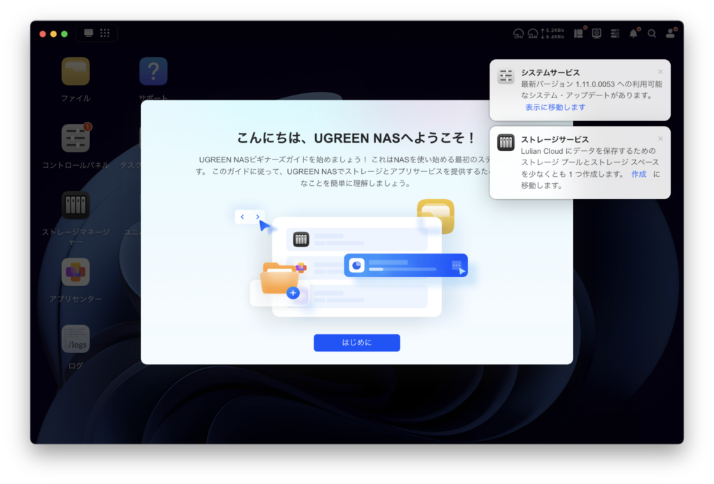 UGREENのNASyncは単体でパソコンのように画面が表示されます。