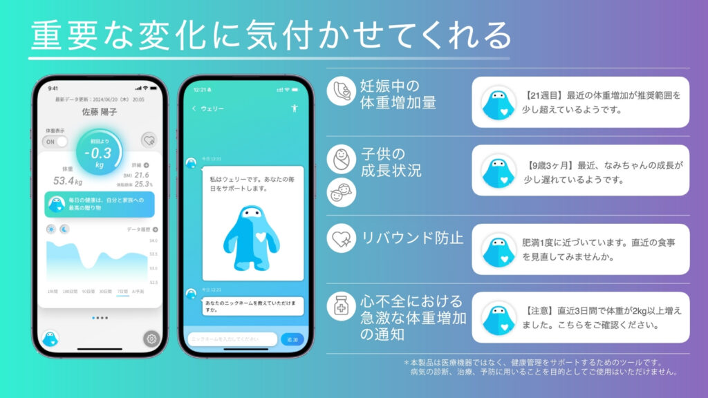 専用アプリ”ウェリー”とAIによるサポートが充実