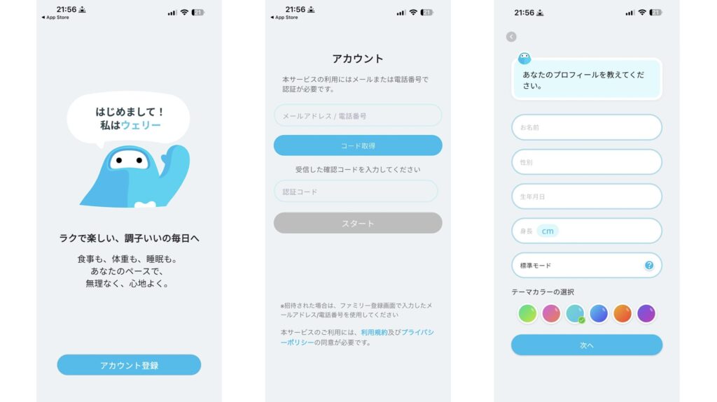 ・アプリをインストールしてアカウントを設定し、プロフィールを設定します。