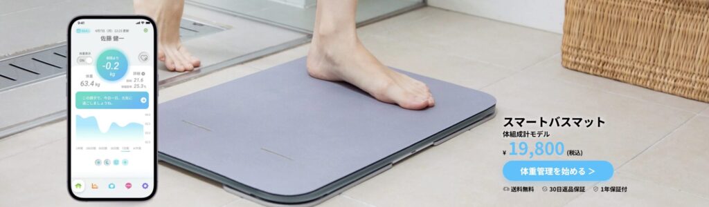 見た目は普通のバスマットなのに、お風呂上がりに3秒乗るだけで自動で体重・体組成を測定&記録してくれる革新的アイテムなんです。