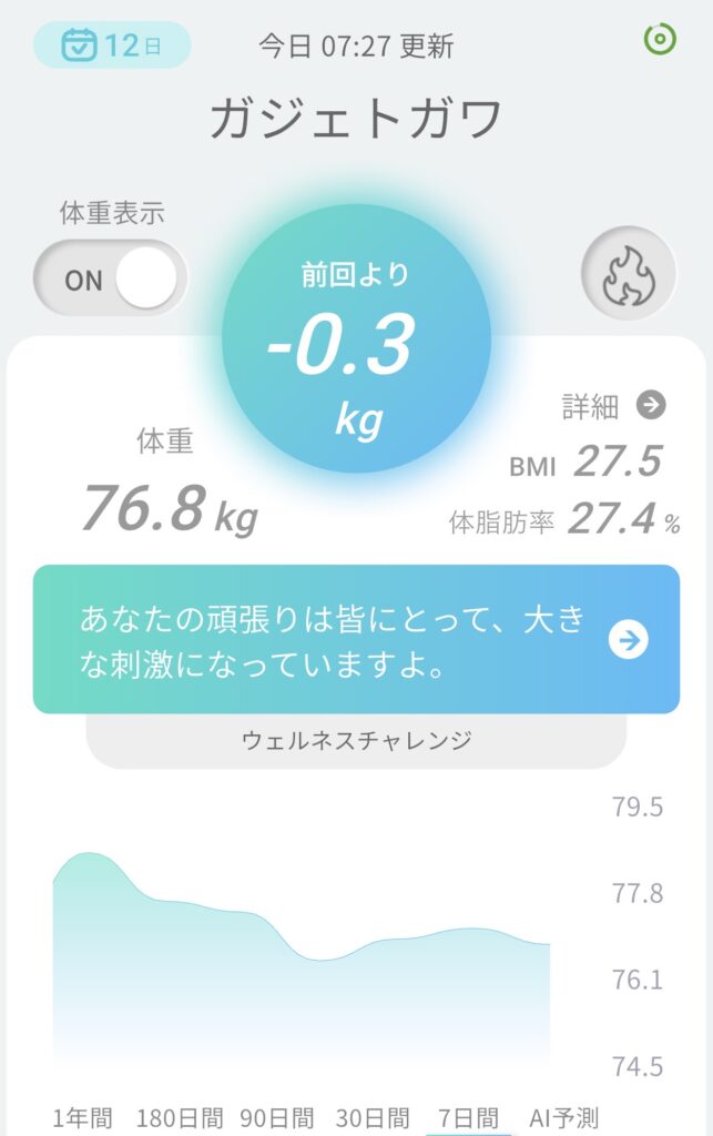 乗るだけで体重変化を自動記録!それだけでめちゃくちゃ楽で便利です!