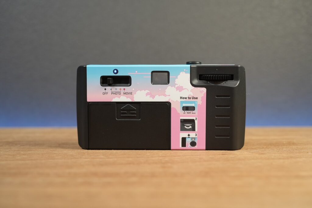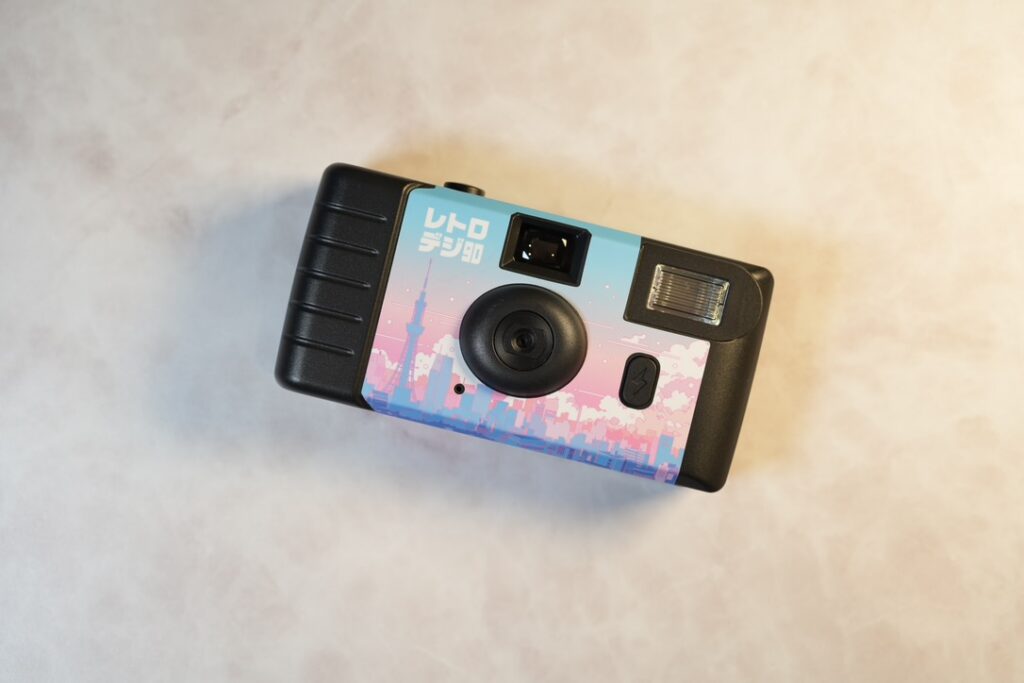 その中でも特に興味深いなと思ったのがフジフィルムの写ルンですに寄せたデザインのレトロカメラ、