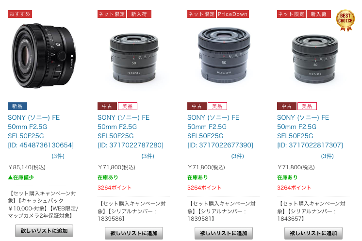 中古で買いたい方はマップカメラやフジヤカメラがおすすめです!!
