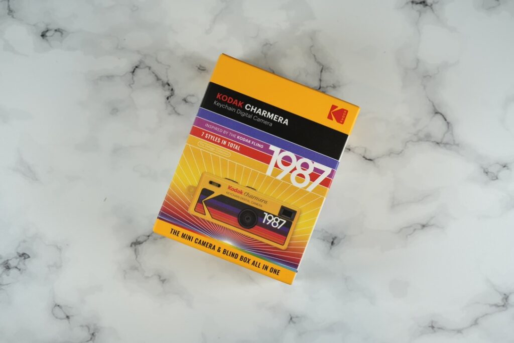 「KODAK Fling」のデザインが印字されたおしゃれな外箱!